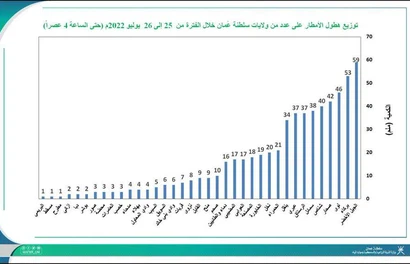طقس العرب - سنان خلف - نشرت وزارة الثروة الزراعية والسمكية وموارد المياه في السلطنة توزيع وكميات الأمطار الهاطلة على السلطنة في الفنرة من 25 إلى 26 يوليو 2022م