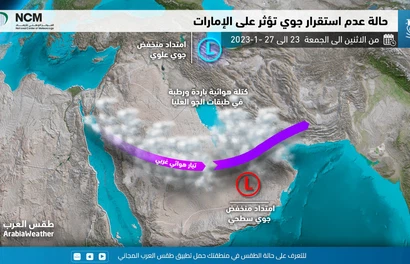 لكن تَوقع المركز الوطني في دولة الإمارات أن تتراجع تأثيرات حالة عدم الاستقرار الجوي عن الدولة خلال يوم السبت 28/1/2023، ويكون الطقس غائم جزئي بوجه عام وغائم أحياناً على بعض المناطق الساحلية والشمالية والشرقية مع فرصة سقوط أمطار نهاراً، ورطب ليلاً وصباح الأحد على بعض المناطق الداخلية مع احتمال تشكل الضباب الخفيف، والرياح شمالية شرقية تتحول إلى شمالية غربية خفيفة إلى معتدلة السرعة و تكون نشطة إلى قوية أحياناً.