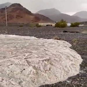 طقس العرب - سنان خلف - بداية قوية للحالة الماطرة على منطقة تبوك، ومشاهد غير مُعتادة لسيولٍ من بَرَد تشق طريقها وسط الصحراء، وذلك بالتزامن مع بدء تأثر المنطقة بحالة من عدم الإستقرار الجوي، تساقطت خلالها أمطار الخير والبركة، لتنعش أجواء المنطقة.