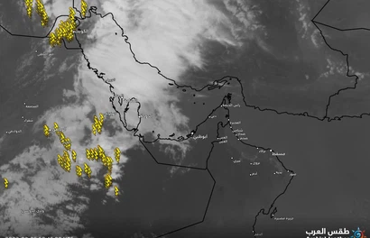 طقس العرب - تُشير أحدث صور الأقمار الاصطناعية في مركز طقس العرب الإقليمي إلى تأثر الكويت صباح اليوم بأحوال جوية غير مُستقرة، حيث تسود أجواء وغائمة وماطرة في العديد من المناطق بمافيها العاصمة الكويت، يصحبها حدوث الرعد أحياناً في بعض المناطق.