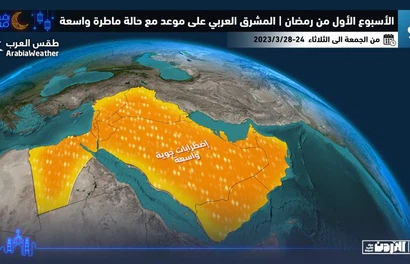 من مركز طقس العرب - تزايدت المُؤشرات الجوية الورادة إلى مركز "طقس العرب" الإقليمي للتنبؤات الجوية حول تعرض عموم دُول المشرق العربي الأيام الأولى من شهر رمضان الفضيل بحالة جوية ماطرة واسعة النطاق، و ذلك إثر اندفاع كتلة هوائية باردة و رطبة في طبقات الجو العليا نحو الأراضي الليبية و تتجه شرقاً لشمال شبه الجزيرة العربية، بالتزامن مع امتداد لمنخفض البحر الأحمر على السطح من الجنوب، و سيؤدي هذا التلاقي، إلى نشوء اضطرابات جوية واسعة التأثير تترافق بهطول أمطار تكون رعدية الطابع أحياناً مما يؤدي إلى ارتفاع فرص تشكل السيول في مناطق عِدّة بمشيئة الله.