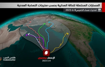 وسيقوم طقس العرب باصدار المزيد من التقارير حول المسارات المتوقعة خلال الساعات القادمة.