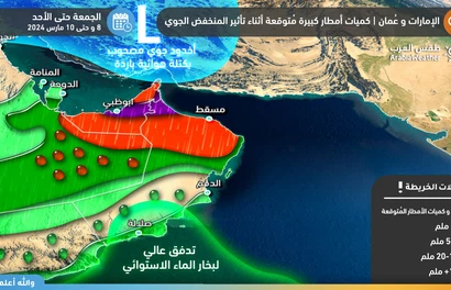 حالة ماطرة قوية واستثنائية تؤثر على الإمارات وسلطنة عُمان السبت والأحد