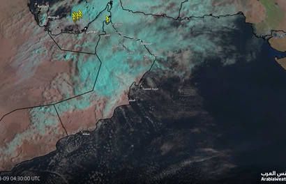 طقس العرب - تظهر آخر صور الأقمار الاصطناعية المستلمة لدينا في مركز "طقس العرب"، إلى وجود سحب رعدية تتحرك صوب محافظتي شمال الباطنة والبريمي، تترافق بأمطار غزيرة مصحوبة بالبرق والرعد وزخات من البرد والتي تكون كثيفة أحياناً.