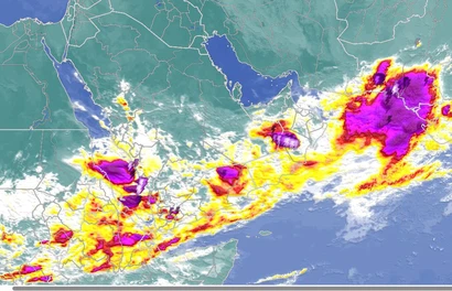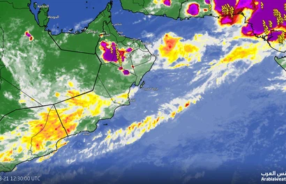 طقس العرب - تتأثر سلطنة عُمان بحالة ماطرة متوسطة إلى قوية الشدة، وتشمل العديد من المناطق، وتتسع اعتبارًا من اليوم وخلال الأيام القادمة لتُصبح أكثر حدة وشمولية، كنتيجة لعبور موجة شرقية تترافق مع تواجد كميات كبيرة من الرطوبة والحمل الحراري العالي في مختلف طبقات الجو الفعّالة.