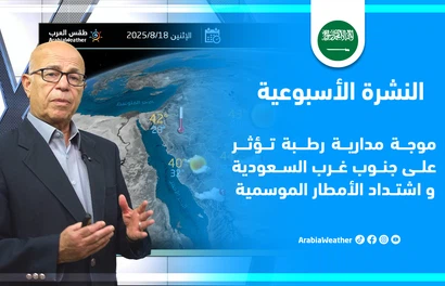 تشير آخر مخرجات أنظمة المحاكاة الحاسوبية في مركز طقس العرب الإقليمي إلى اندفاع كميات كبيرة من الرطوبة المدارية من بحر العرب نحو الأجزاء الجنوبية من شبه الجزيرة العربية، ما يؤدي إلى تأثيرات جوية تشمل عدة دول عربية بهطولات مطرية متفاوتة الشدة والغزارة.
