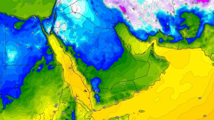 يتوقع أن تندفع نحو شرق البحر المتوسط و بلاد الشام وشمال المملكة كتلة هوائية قطبية المنشأ قادمة من شرق أوروبا يوم الأربعاء، حيث تنخفض درجات الحرارة بشكل كبير وحاد في شمال المملكة، ويسود طقس شديد البرودة خاصة ساعات الليل.