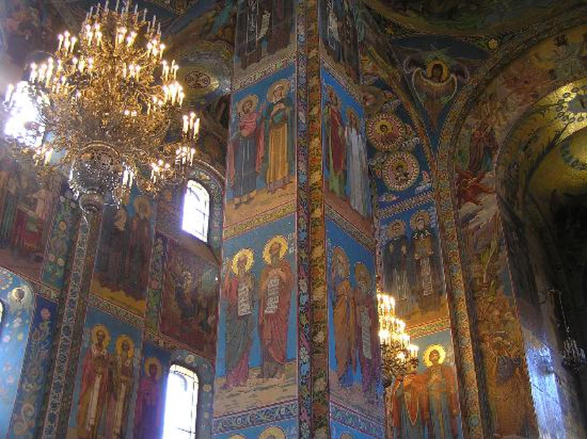 كنيسة المخلص في سانت بطرسبرغ (روسيا)، والتي تتميز بقبابها الذهبية وألوانها المتلألئة.