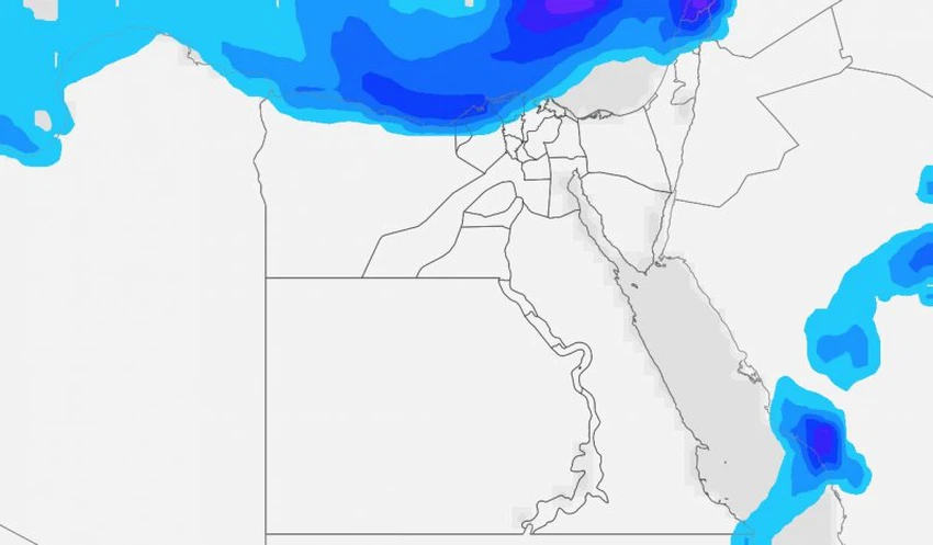 وكما تُظهر خرائط النماذج العددية المختلفة لكميات واماكن توقعات الهطول المطري على مصر يوم الحد حسب آخر التحديثات: