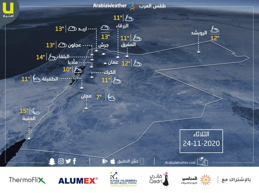 • درجة الحرارة الصغرى المتوقعة في المفرق: °11
