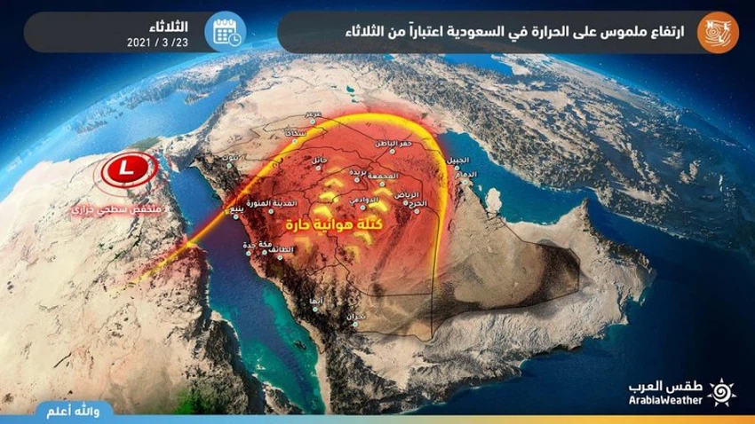 وفي التفاصيل، يتوقع أن تؤثر الكتلة الهوائية الحارة بشكل مُباشر على المنطقة الشرقية والعاصمة الرياض، لتبلغ الحرارة العظمى ذروتها يومي الأربعاء والخميس، حيث يُتوقع أن تكون العُظمى حول الـ 40 درجة مئوية في الرياض والإحساء.