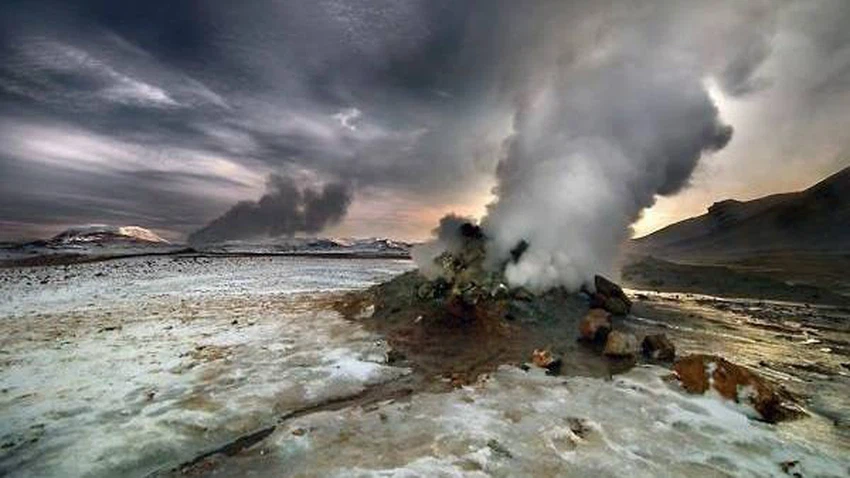 تقع البقعة الملتهبة أو نامسكارو في آيسلندا، عند قاعدة جبل، وتُعتبر المنطقة بأسرها بقعة ملتهبة دائمة النشاط، ومن المناظر الطبيعية الأكثر غموضًا وإثارةً للرعب على هذا الكوكب. تغطي الأرض الحمم البركانية التي تفور وينبثق منها البخار الكبريتي والغاز البركاني، اللذان يكوّنان الضباب الذي يغطي سماء المنطقة.