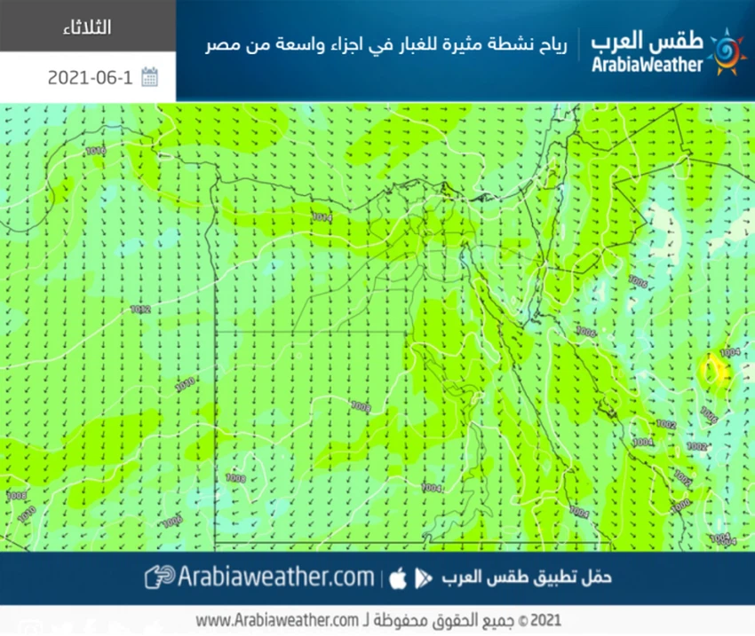 تنشط الرياح الشمالية الغربية في أجزاء واسعة من مصر، تترافق بارتفاع في نسب الغبار في الأجواء خاصةً في مصر العليا، وتكون الأمواج معتدلة إلى مضطرب في البحر المتوسط والبحر الأحمر، مما يعمّل على اضطراب جزئي في بعض انشطة الملاحة البحرية.