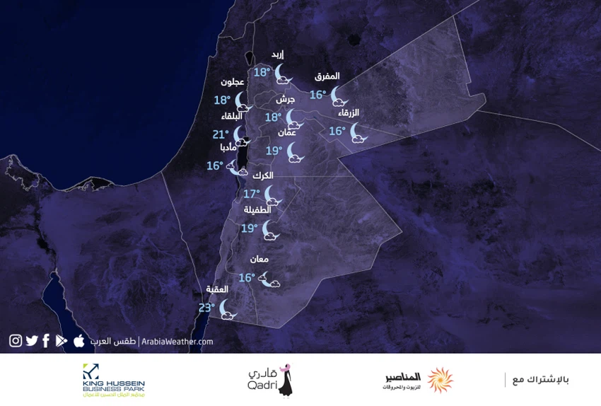 درجة الحرارة الصغرى المتوقعة في الكرك: °16