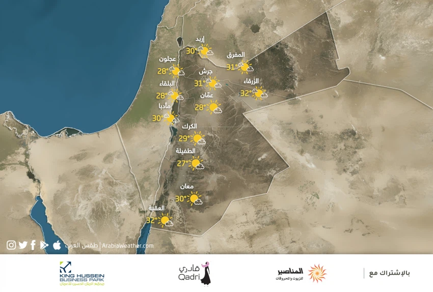 درجة الحرارة العظمى المتوقعة في المفرق: °31