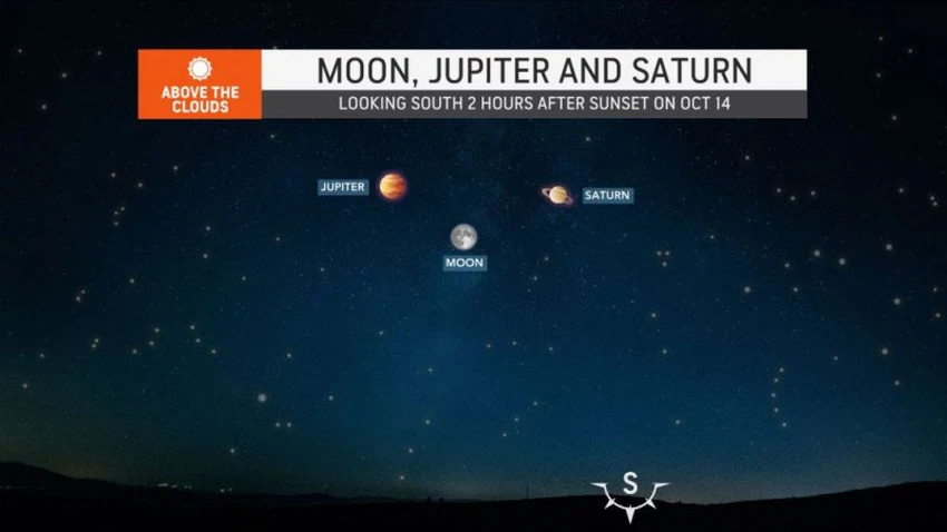 سيكون من السهل رؤية مثلث الأجرام السماوية هذه في السماء الجنوبية مباشرة بعد حلول الظلام في 14 أكتوبر مع توهج الثلاثة معًا طوال الليل تقريبًا.
