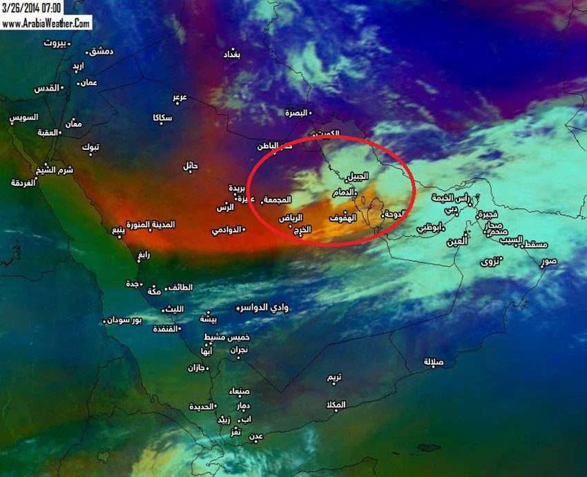تنخفض درجات الحرارة بشكل كبير وملموس،ويكون الطقس عاصفاً وبارداً بشكل لافت في كافة المناطق، وتهطل الأمطار بمشيئة الله في مُعظم المناطق صباحاً، وتتركز لاحقاً في المنطقتين الشمالية والوسطى وتكون رعدية غزيرة على فترات ومصحوبة بالبَرَد فيها.