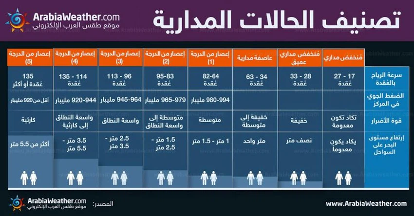 وتالياً تصنيف الأعاصير من حيث درجاتها وكيفية تصنيفها: