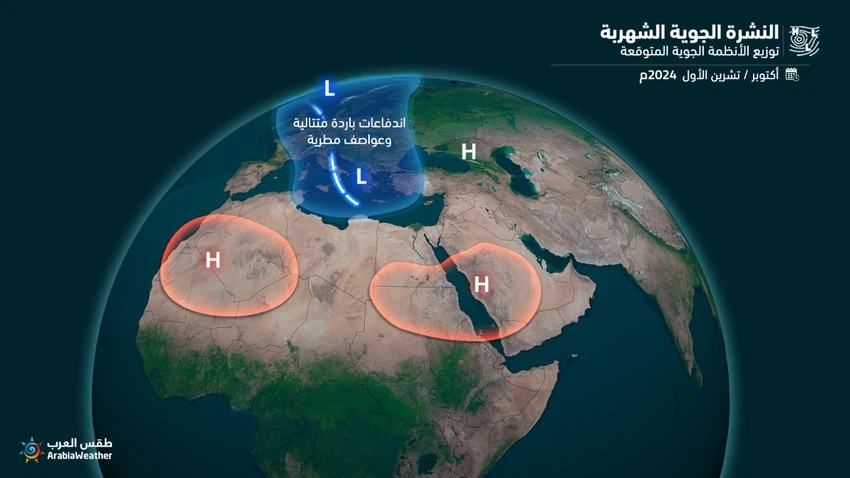 طقس العرب - سنان خلف - أصدر فريق التنبؤات الجوية في "مركز طقس العرب الإقليمي" قبل قليل توقعات الطقس لشهر أكتوبر 2024م والأسابيع الأولى من موسم الوسم، وتشمل التوقعات الأولية درجات الحرارة وتوقعات الأمطار وانحرافها عن معدلاتها، وفيما يلي التفاصيل: