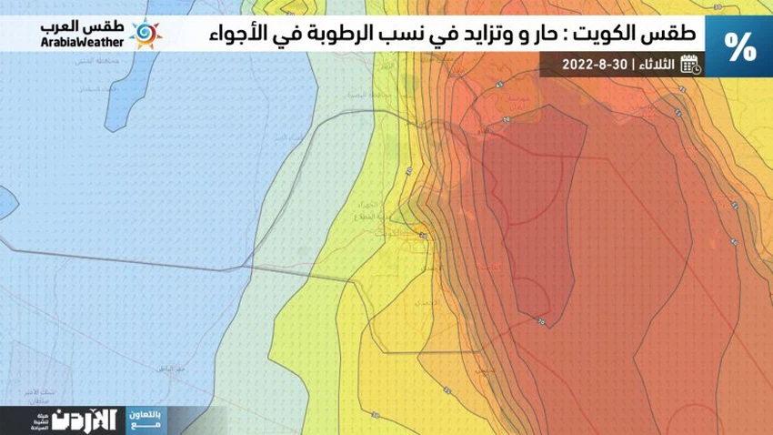 وفي التفاصيل، يُتوقع أن تبقى درجات الحرارة أقل من مُعدلاتها المُعتادة نسبةً لمثل هذا الوقت من العام بِعدّة درجات مئوية في أغلب مناطق الكويت يوم الثلاثاء، مع بقاء الأجواء حارة إلى شديدة الحرارة بوجهٍ عام نهاراً في عموم المناطق ورطبة خاصةً في المناطق الساحلية، وتتراوح درجات الحرارة كعظمى ما بين 33 و 46 درجة مئوية، والرياح جنوبية شرقية رطبة على أغلب المناطق.