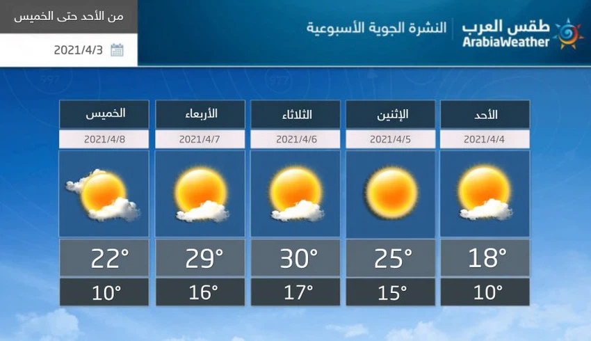 ونستعرض معكم درجات الحرارة المُتوقعة خلال الأسبوع القادم:
