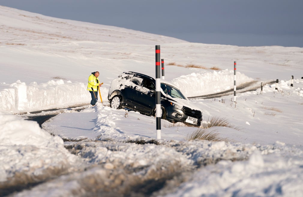 (سيارة عالقة في الثلوج الكثيفة في شمال يوركشاير - تصوير: داني لوسون)