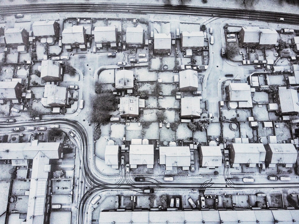(صورة بطائرة الدرون لتساقط الثلوج في منطقة لي بارك في ليفربول ، إنجلترا - تصوير: بيتر بيرن)