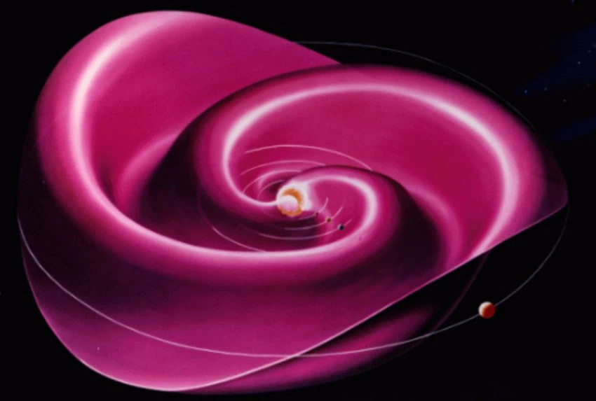 وبسبب دوران الشمس المستمر حول نفسها، يحدث انحناء في المجالات المغناطيسية للشمس، مما ينشأ عنه هيكل حلزوني يُعرف بـ"دوامة باركر" أو تيار الغلاف الشمسي، وهو يشبه التموجات التي تنطلق في الفضاء وأحياناً تحمل هذه التموجات جسيمات مشحونة نتيجة لنشاط شمسي مرتفع، وإذا كان الكوكب في مسار هذه "الموجة"، فإنها تصطدم به.