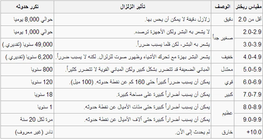 معنى الأرقام التي تصف قوّة الزلزال