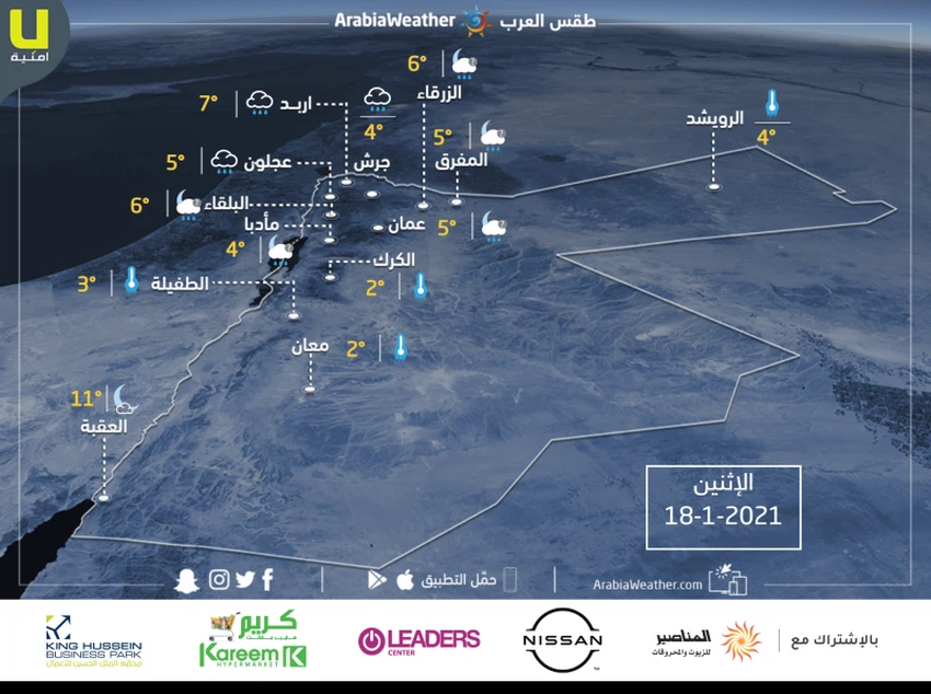 درجة الحرارة العظمى المتوقعة في الكرك: °7