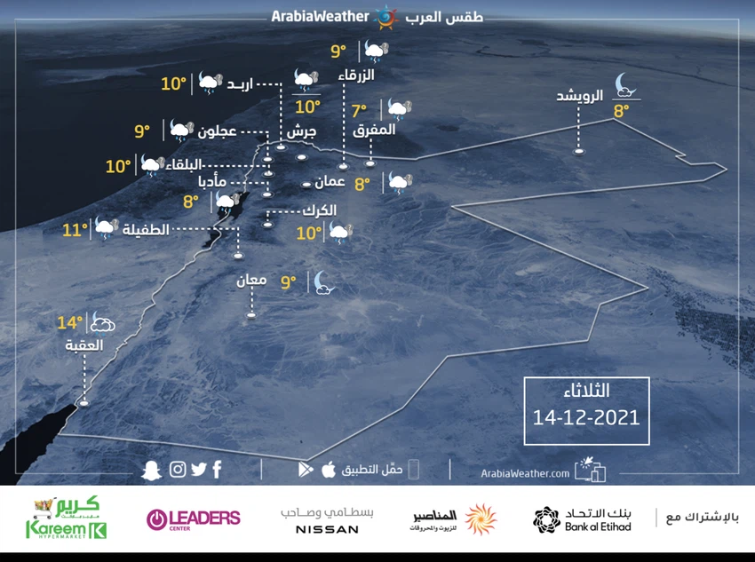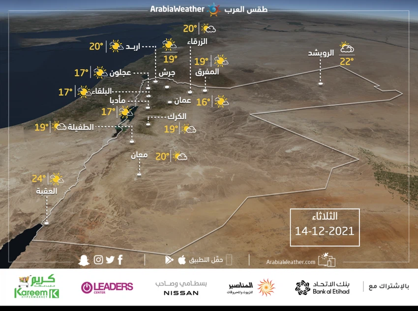 حالة الطقس ودرجات الحرارة المُتوقعة في الأردن يوم الثلاثاء 14/12/2021