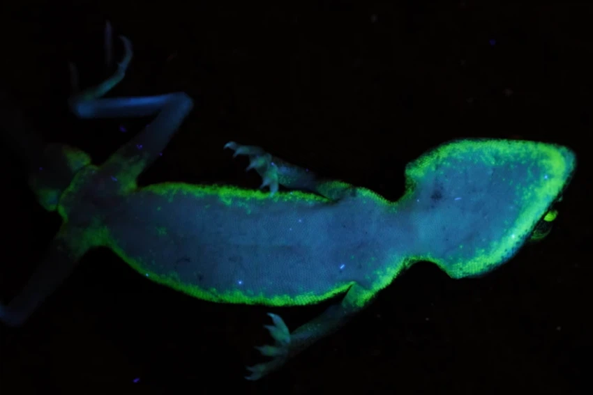"على مدار عام واحد، قمنا بمسوحات في المناطق الصحراوية، واكتشفنا بالصدفة هذه الظاهرة المثيرة، حيث تُظهر بعض أنواع أبو بريص الصحراوية توهجًا شديدًا عند تسليط الضوء فوق البنفسجي عليها".