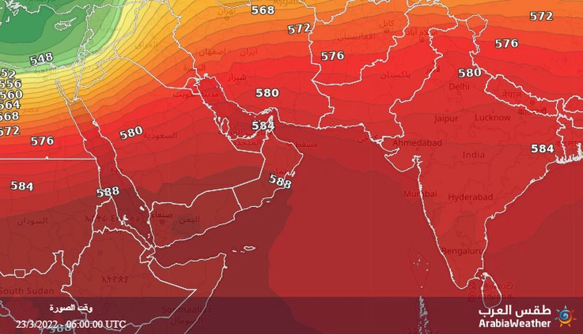 طقس العرب - تُشير خرائط النمذجة الحاسوبية تلك المُعالجة في مركز طقس العرب إلى استمرار مُرتقب في سيطرة المُرتفع الجوي شبه المداري على أجواء المنطقة، مانعاً من إقتراب المُنخفضات الشتوية من السلطنة، بحيث تسود أجواء مُستقرة في عموم المناطق ودرجات حرارة أعلى من مُعدلاتها نسبةً لمثل هذا الوقت من العام بكثير.