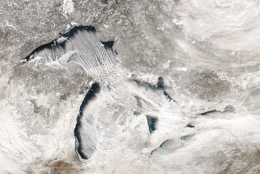 موقع ArabiaWeather.com- وصل الغطاء الجليدي في البحيرات العُظمى في أمريكا إلى ذروته خلال الأيام الماضية،حيثُ تجمّد ما نسبته 85% من المياه في كلا البحيرات الـ5.