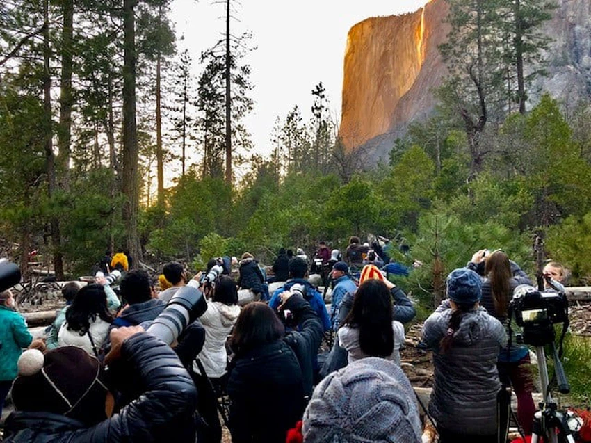 تشتهر حديقة يوسيميتي الوطنية في ولاية كاليفورنيا بالمناظر الطبيعية الخلابة والمنحدرات الجرانيتية والشلالات، ومن بين ملايين الأشخاص الذين يزورون المتنزه كل عام، يختار البعض السفر إلى يوسيميتي في الأسبوع الثالث تقريباً من شهر شباط/ فبراير لاقتناص فرصة مشاهدة حدث نادر لشلال مائي صغير يبدو لفترة وجيزة كما لو كان شلالاً من نار.