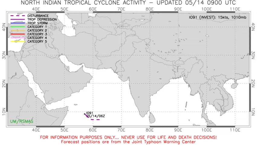 مراقبة نشاط استوائي في بحر العرب مع نهاية الأسبوع