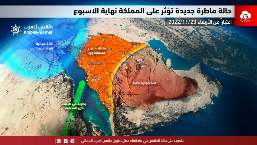 وتأتي هذه التوقعات كنتيجة لاحتمالية نتيجة اندفاع كتلة هوائية باردة نسبياً من الشمال و الشمال الغربي بالتزامن مع هبوب تيارات هوائية دافئة ورطبة من الجنوب، واستجابة فعّالة لِمُنخفض البحر الأحمر و إندفاع تيارات مُشبعة بالرطوبة في طبقات الجو المُختلفة، و يعني ذلك توافر العديد من الظروف الجوية لتشكل سحب رعدية تشمل أنحاء واسعة من المملكة بإذن الله.