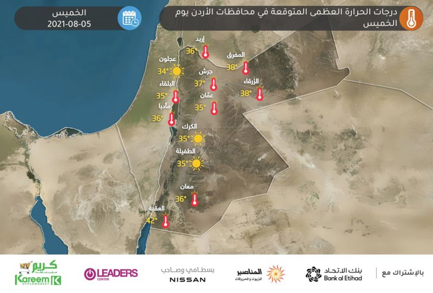 Jordan | Flaming weather in low-lying areas Thursday and a chance for local showers of rain in these areas