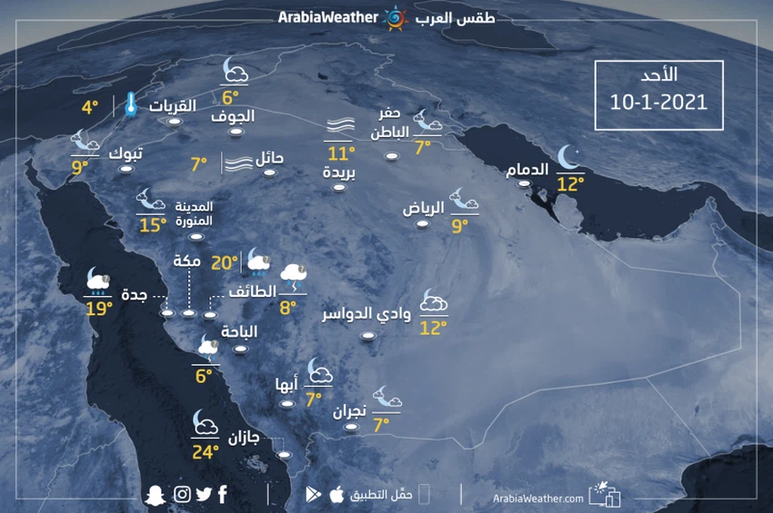 Weather and expected temperatures in Saudi Arabia on Sunday 10-1-2021