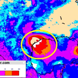 1000 ملم، مجموع الأمطار التراكمية المتوقعة خلال فترة تأثير الاعصار "هارفي"