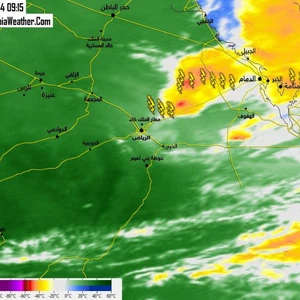 *خطر العواصف البردية والرعدية خاصة على شرق منطقة الرياض.