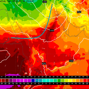 وتظهر الخرائط الجوية اندفاع كتلة هوائية شديدة البرودة يوم الاحد القادم، وسيؤدي تقابل هذه الكتلة الهوائية مع الكتلة الحارة فوق المملكة الى تجدد حالات قوية من عدم الاستقرار الجوي على مناطق من المملكة ، هذه الحالات الجوية تشمل موجات كثيفة من الغبار ، كذلك تشكل السحب الرعدية وربما العواصف الرعدية على اجزاء من المملكة.
