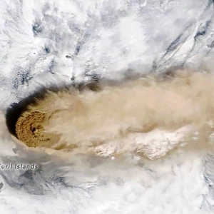 طقس العرب- تمكن رواد الفضاء على متن محطة الفضاء الدولية من التقاط صورة مذهلة لثوران بركان رايكوك الواقع في جزر الكوريل التابعة لروسيا.