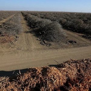مزارع اللوز التي تعرضت للجفاف في كاليفورنيا.