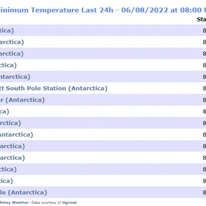 As for if you were curious to wonder about the lowest temperature recorded in the world during the past 24 hours, it was in Antarctica, at 67.5 degrees below zero degrees Celsius.