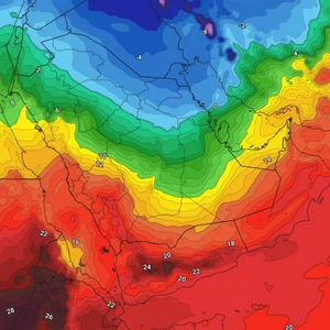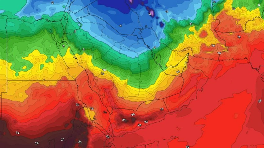Arab Weather - Weather experts at the Arab Weather Regional Center said, based on advanced computer modeling, that the Kingdom will be affected, God willing, in the coming days, starting from its north on Saturday, February 22, 2025, by a very cold air mass of polar origin, and it will remain far from Riyadh until Monday/Tuesday night before it begins to reach the capital and the eastern regions, God willing, which will cause a sharp drop in temperatures.