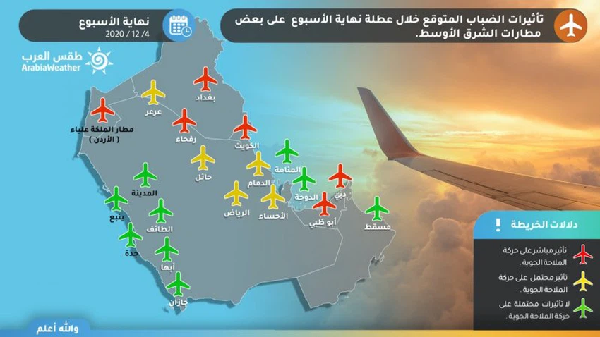 Fog reduces horizontal visibility, and fog often causes confusion in air traffic and airport operations, and because the expected wet wave will have a wide impact, opportunities for fog will include many airports from the Arabian Peninsula, Iraq and the Levant.