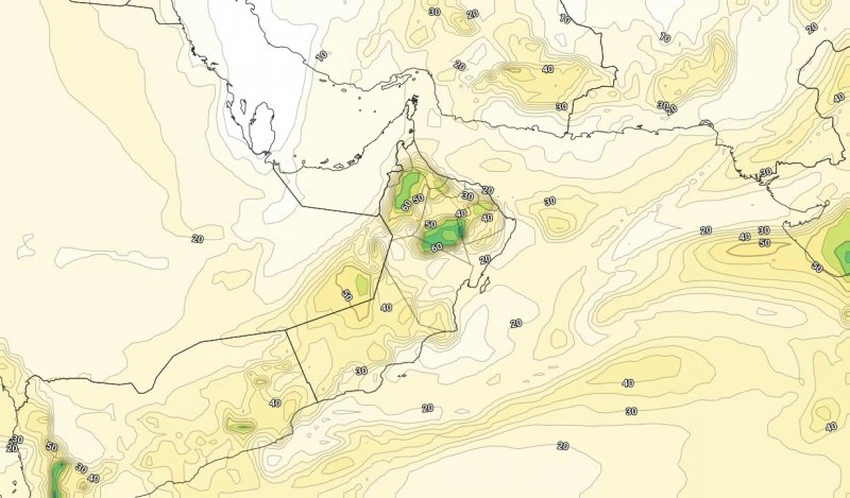 Arab weather - God willing, it is expected that the chances of large areas of the Hajar Mountains being exposed to thunderstorms from rain will improve during the second half of the week, which will be heavy in some areas and work on the flow of water in valleys and reefs.