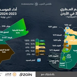 Data from the Jordanian Meteorological Department show that at the end of Al-Murabaniyya and the beginning of the Khamseen this winter, the rainy season is considered in most agricultural areas (including the northern Jordan Valley) and the areas where dams are concentrated in Jordan (north and center of the Kingdom) have recorded a distinguished performance for the rainy season until... This moment exceeded the expected rates for this time of the year 1-2-2024, with the exception of the eastern regions, the southwestern highlands, and the southern Jordan Valley. This is in complete contrast to the last season, when the Kingdom Valley and the southern regions were characterized by an unusually excellent rainy season.