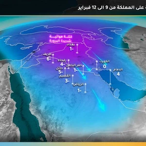 As shown by the attached map, it is expected that some areas will record record temperatures, as temperatures drop to large levels that would pose a real threat to life in the event of staying outside the home or in areas that are not well heated, where it is expected to register Hail for example 5 degrees below zero, while Tarif in the north reaches 6 degrees below zero! With 4 degrees below zero in Rafha